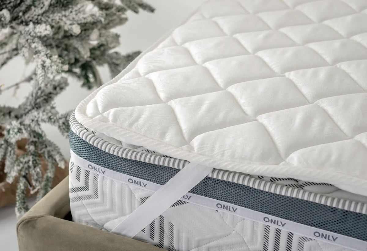 Топпер выполнен из гипоаллергенных и экологичных материалов. Фиксируется за счет креплений из резинок с четырех сторон.